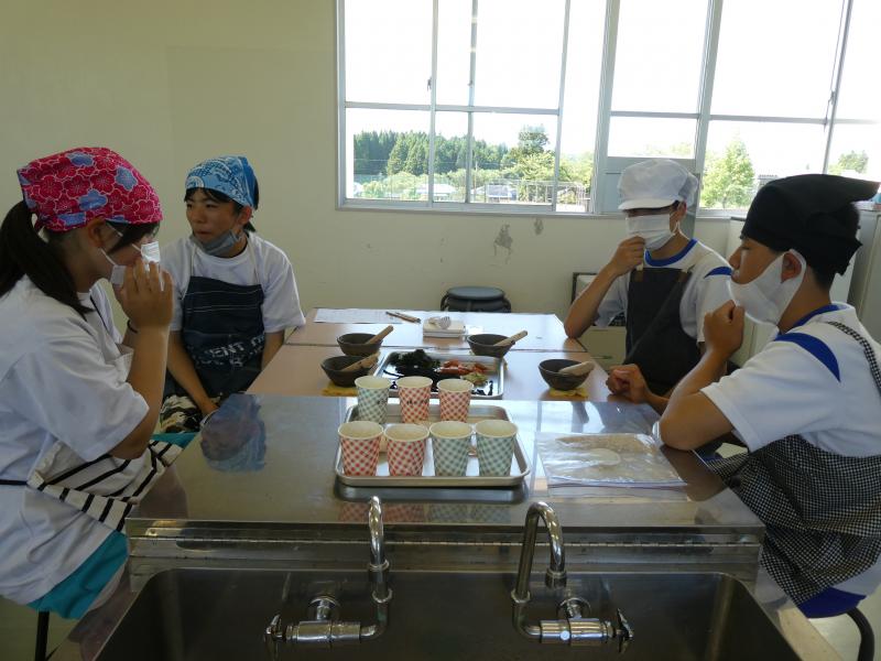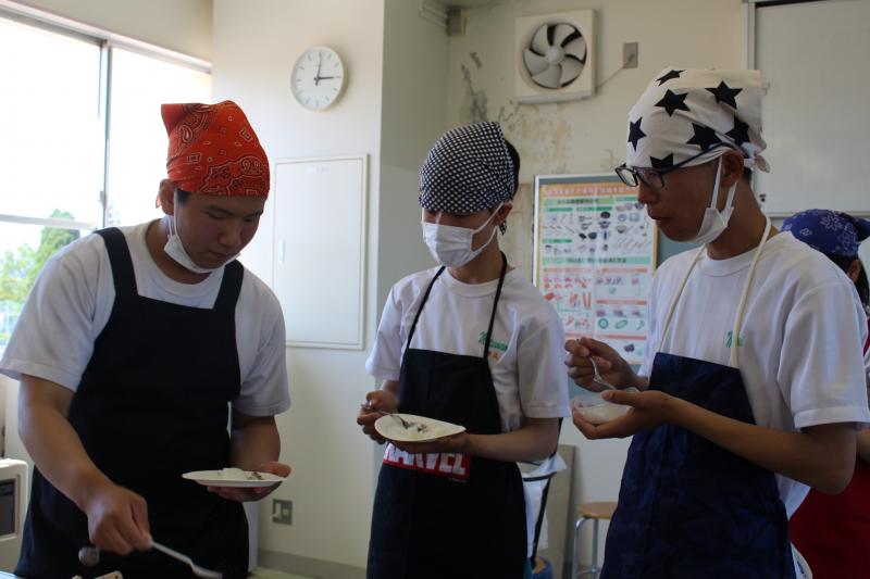 作りながら、調合し味見を繰り返して、それぞれのグループで「のとかけ」が仕上がり、ご飯にかけて試食しました。アイデアを持ち寄って、この後「のとかけ」を完成させていきます。