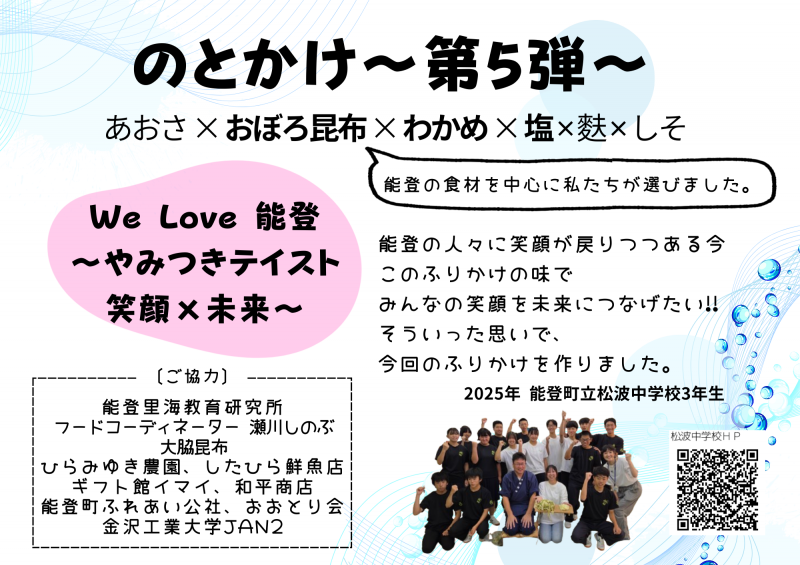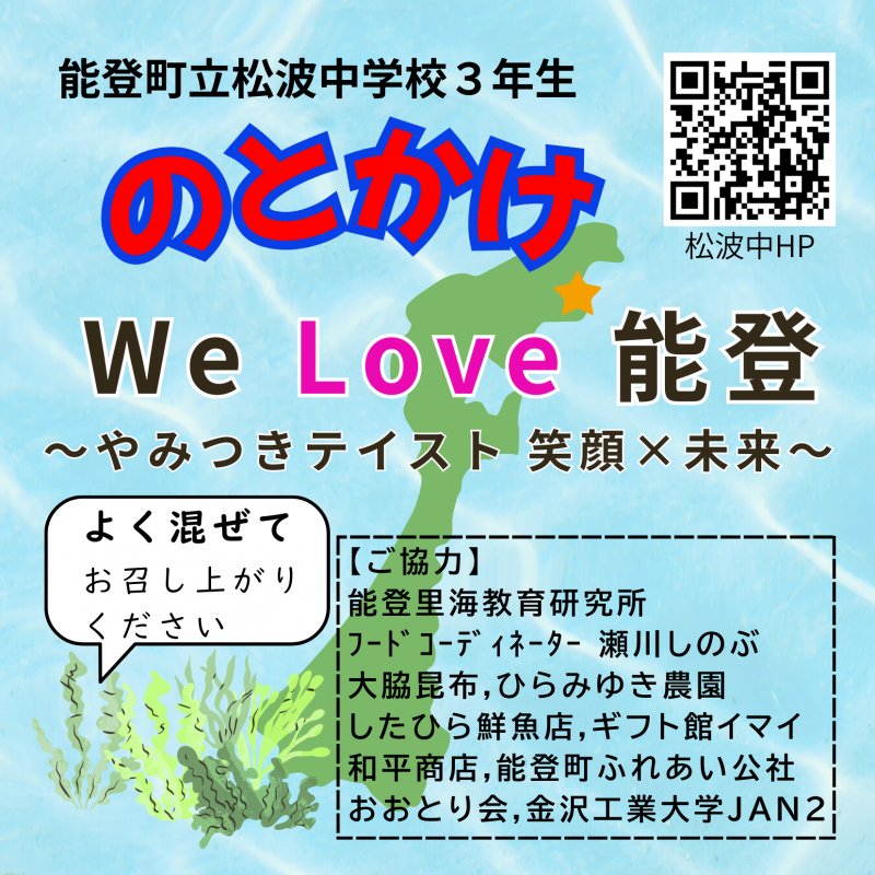 R7年度松波中学校3年生が「のとかけ」第5弾を作りました。