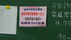 5月15日から始まる「第1回定期試験」に向けて、第1回「家庭学習強化期間」が始まりました。生活時間の4点固定と学年プラス1の家庭学習時間で、確実な基礎学力定着を図り、納得できる成績を獲得してください。