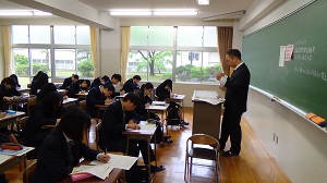 各学年では、本格的に授業がスタートしました。本校では、プロジェクターやタブレット端末等を効果的に活用し、生徒の学ぶ意欲を喚起し、「主体的・対話的で深い学びの」視点に立った授業を展開しています。また、生徒一人一人が主体的・協働的に学習できるよう授業改善も進めています。