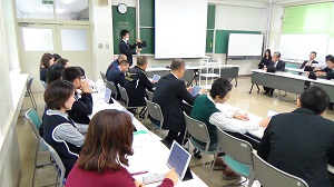 奈良県立榛生昇陽高等学校と千葉県立船橋法典高等学校の先生方が本校に来校され、文部科学省の指定研究事業、基礎学力定着、授業改善、「新しい時代に必要となる資質・能力の育成」等について情報交換をしました。研究会の間には、本校の授業参観もしていただき、「主体的・対話的で深い学び」や授業改善についてご助言もいただきました。
