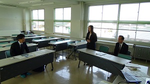 北海道利尻高等学校の先生が本校に来校され、文部科学省の調査研究事業の取り組みや家庭学習の習慣化、各学科における進路指導、MAS(松高アカデミックサポート)等について情報交換をしました。研究会の間には、本校のICT機器活用授業も参観していただき、「主体的・対話的で深い学び」についてご助言もいただきました。