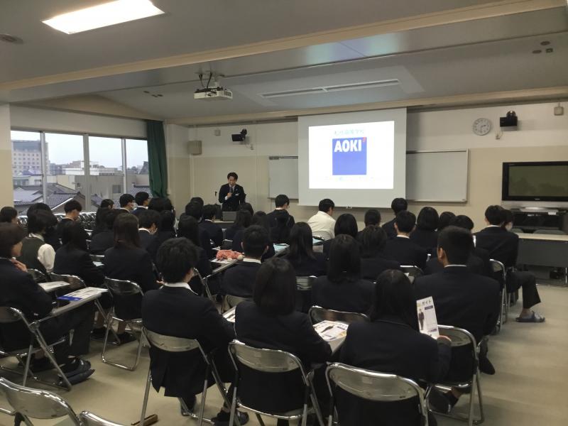 株式会社AOKIの稲葉康文様をお招きして、3年生を対象にスーツ着こなしセミナーを実施しました。