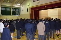 3学期始業式が行われました。暦の上では小寒から大寒へと変わる時期、厳しい寒さの中ではありましたが、皆元気に登校できたこと、教員一同嬉しく思っています。始業式では、校歌斉唱ののち、校長先生の訓話、生徒課、保健課から新学期に向けてのお話のあと、各クラスでHRや授業を行い、3学期のスタートを切りました。