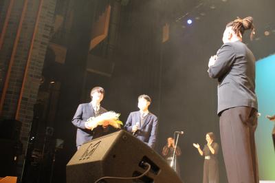 美しいゴスペルを奏で、演者の方々も生徒が座る席に入って下さり、一緒に