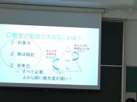 ゲームで例えながら①計算力・②解法暗記・③思考力について話をして、生徒もしっかり