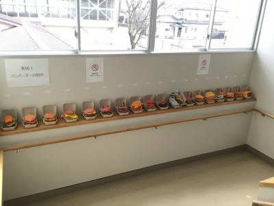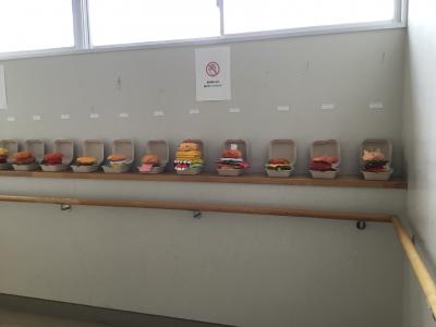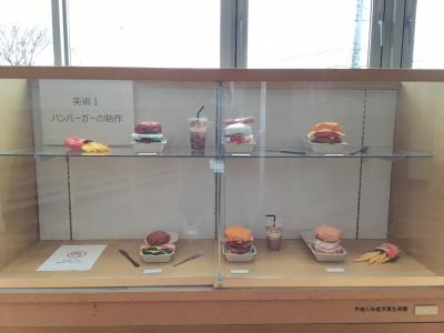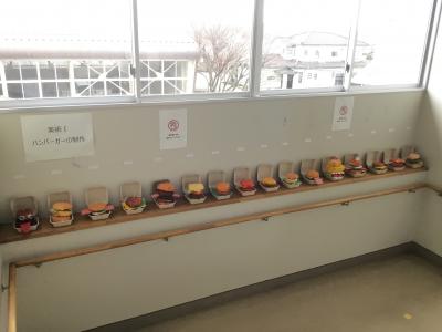 2024年3月29日 12時27分1・2年生の美術選択者による新聞紙で制作したハンバーガーを展示しました。