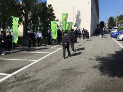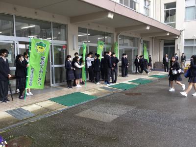 あいさつ運動を実施しました。あいさつ運動に立った生徒たちは大きな声で