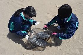 海浜公園では、海岸清掃にも取り組み環境美化について考えることができ、積極的にゴミ拾いに取り組む姿が見られました。