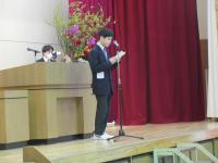 送辞で在校生代表の野村拓史さんが、「 学校行事の中で特に印象に残っているのは、文化祭と陸上記録会です。文化祭では、先輩たちがアイディアを出し合ってできることを考え、学校生活を盛り上げてくれたこと」への感謝の気持ちを述べました。