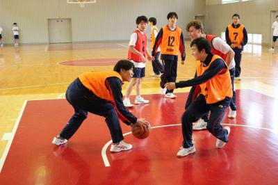 バスケットボール競技では、ボールを互いに取り合い、ゴールを目指して