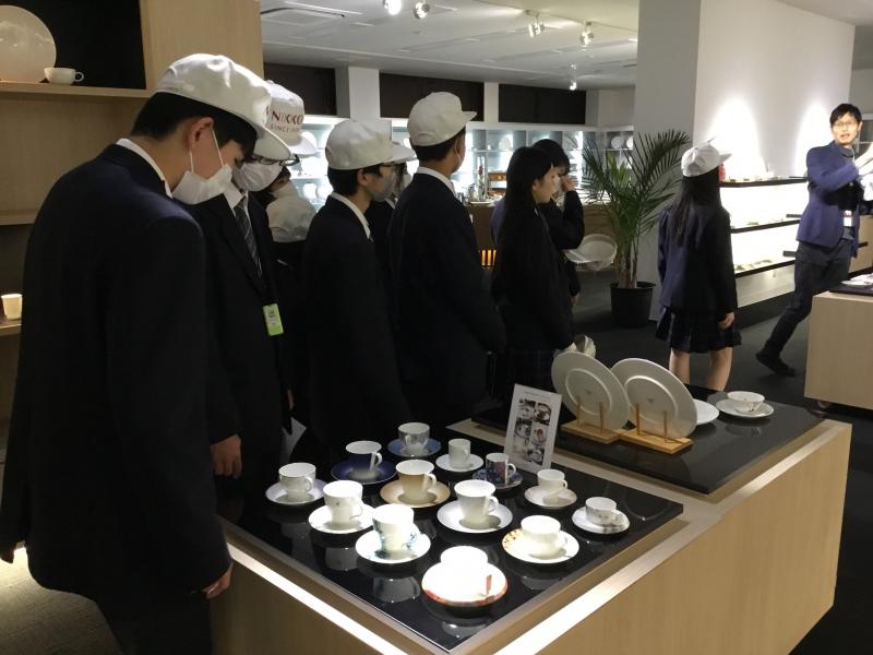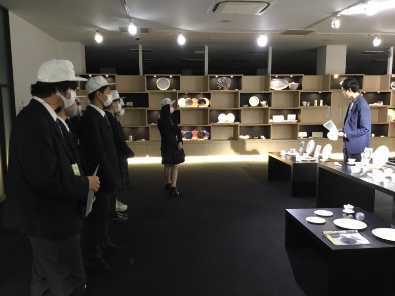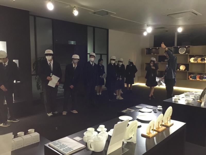 1年制普通科生徒24名でニッコー株式会社(石川県白山市相木町383)の企業見学に行きました。今回の見学目的は「ものづくりの現場を見学し、地元企業の理解を深める」ことです。15日に大学見学、今回は企業見学と卒業後の進路選択の一助になればいいと思っています。陶磁器の製造工程を見ることはなかなかないことだと思うので、工程順に見学できて楽しかったのではないでしょうか。ショールームでは陶器のバリエーションも楽しめ、美術館にいるような感覚をもちました。手作業の部分と工業化の部分の両方から製品が出来上がっていることがわかり、とてもためになった企業見学だったと思います。松任に、ニッコーあり!!ですね。