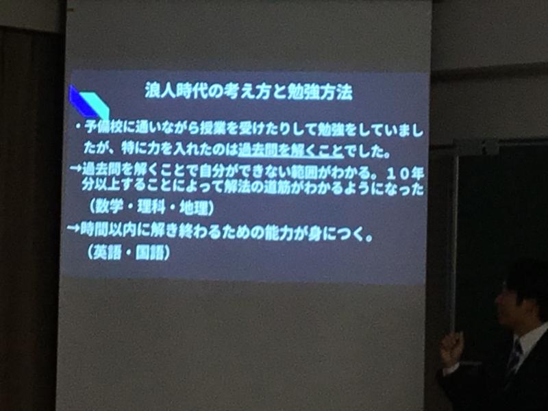 試験発表のあった11月22日(水)は本校教員の早川先生から、大学受験の勉強法について