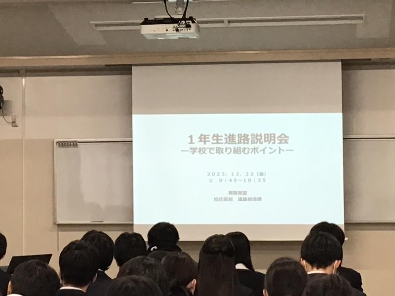 などを進路指導主事の村井先生が説明しました。来年の今頃には、具体的