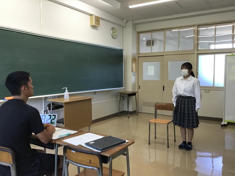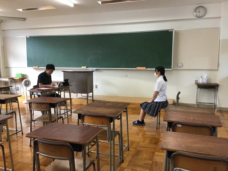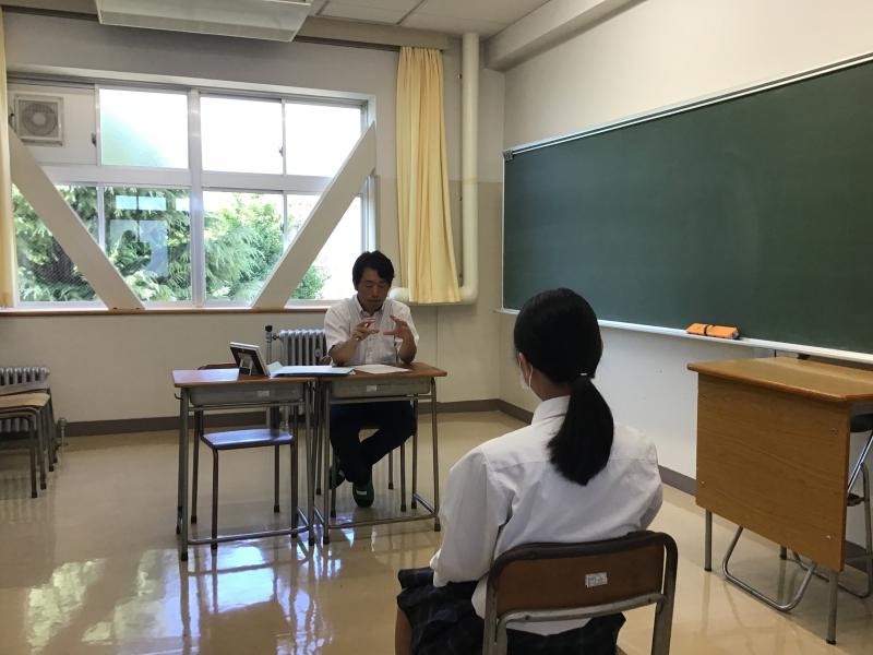生徒は、初顔合わせの教員との面接に臨みました。やや緊張した面持ちながら、目を向いて