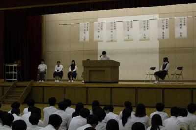 中町校長から「昨年に比べて、集合が早かったが、生徒の中に緊張感が足りない者もおり、
