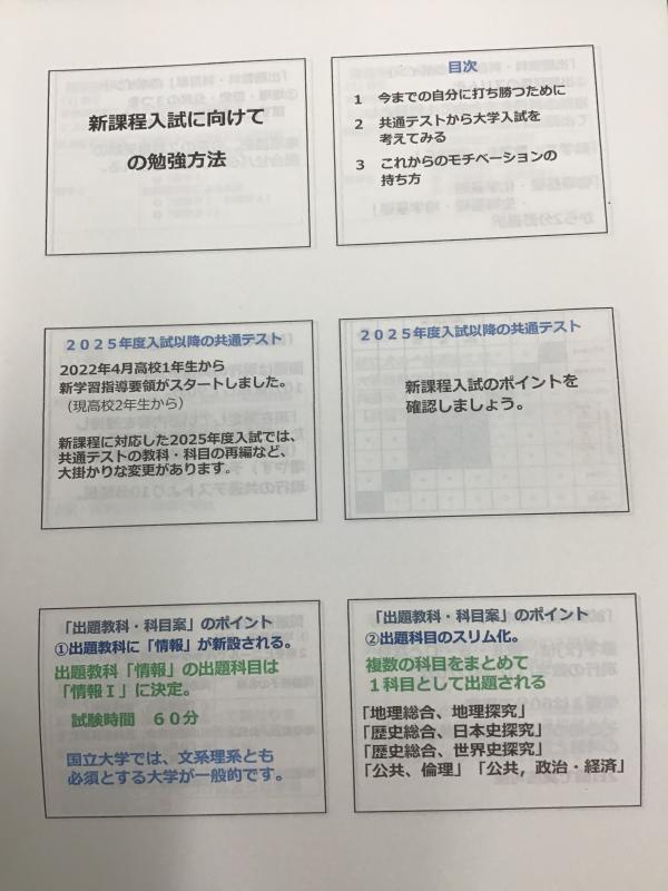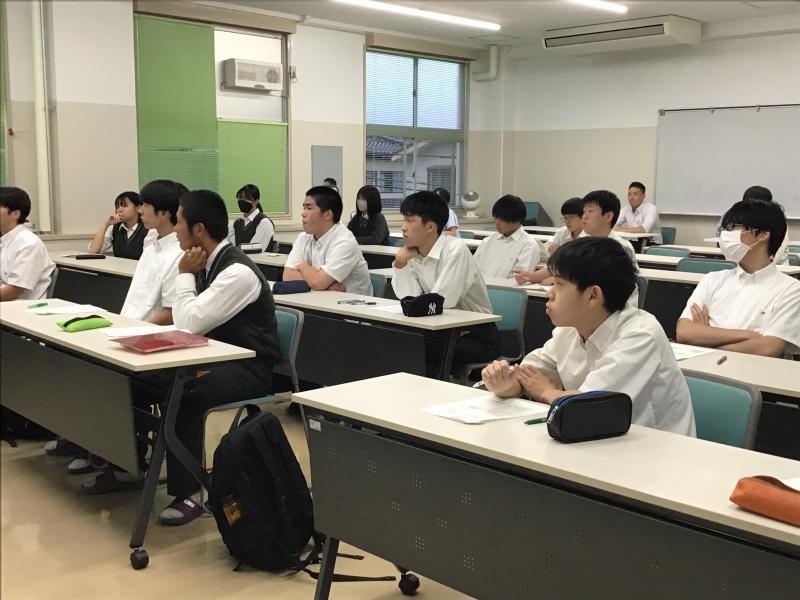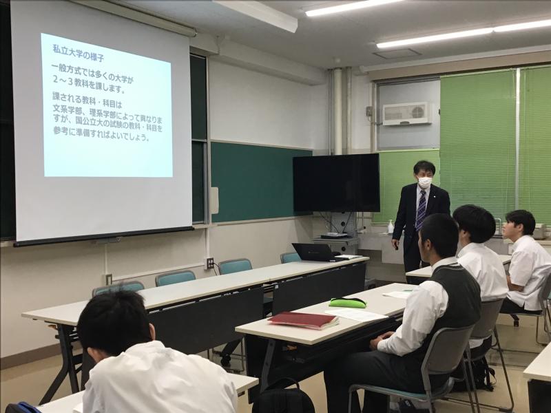 松音塾(1・2年生)対象に、標記の内容について進路指導主事 村井先生が説明を