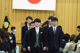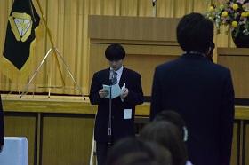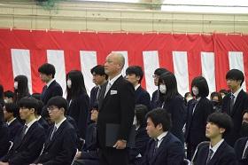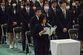 送辞で在校生代表の谷内亮斗さんが、コロナ禍の制限の中、学校行事が中止や変更を余儀なくされる中、アイディアを出し合って、できることを考え、学校生活を盛り上げてくれたことへ感謝の気持ちを述べました。