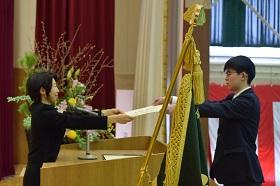 第60回卒業証書授与式が、3月1日(水)に本校第2体育館で、松田高志PTA会長、橋場勇生同窓会長を来賓に迎え、挙行されました。