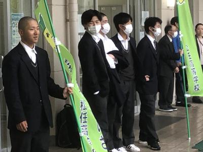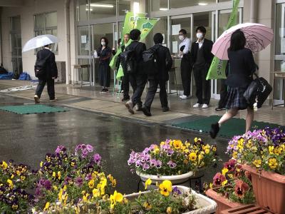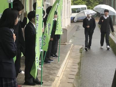 登校する生徒に元気にあいさつをしました。