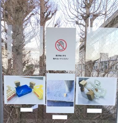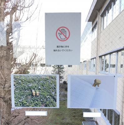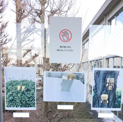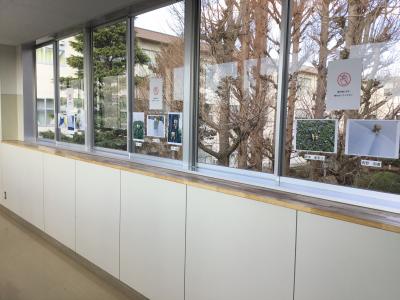 2階渡り廊下に3年生が撮影した写真作品を展示しています。