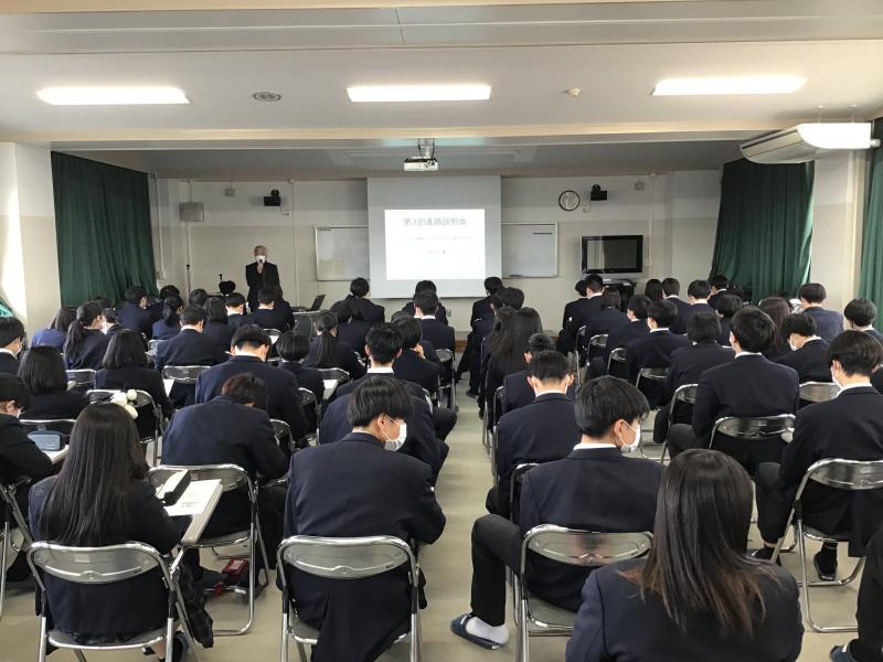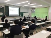 2年生に向けて、今年度最後の進路説明会を実施しました。第3回進路希望調査は、来年度スタートの礎となる大切な調査です。今回の方向性(進学・就職)をもとに、来年度の教材発注をするので、内容に矛盾のないよう正確に入力することが大切です。今回は、進路希望調査入力にあたっての留意点、学部・学科を決めて進学選択をすること、職種を決めて就職を考えることなど、進路選択に欠かせない大切な観点を説明しました。これを機会に、おおまかな方向性(進学・就職)を決めるだけでなく、勉強する内容や職種(仕事の中身)を考える機会にしてほしいと思います。自分の大きな選択を決める時期に来ていますので、他人事でなく自分で責任をもって選択する姿勢で、第1希望の合格を目指して頑張りましょう。オープンキャンパスへの参加や企業情報の収集などできることから行動しましょう。
