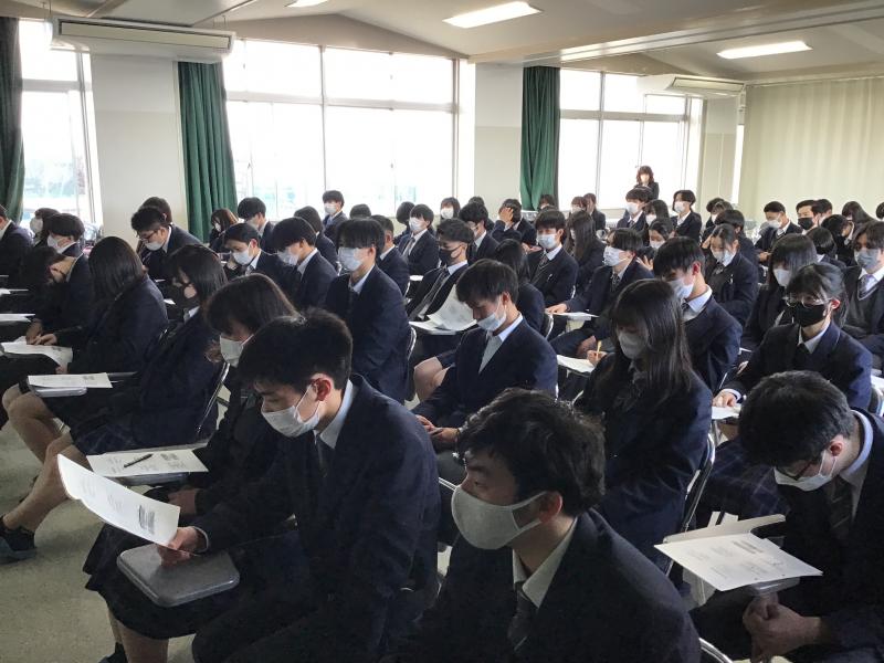 試験後は学年集会を開き、今後の予定や過ごし方を確認しました。