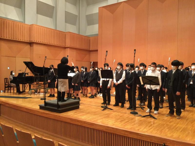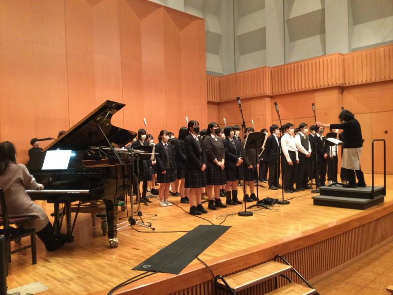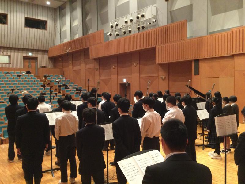 メンバーは記念式典合唱隊に加え、音楽選択者を中心とした1・2年生有志と教職員。ピアノ伴奏および録音はプロの方です。1月から、何度か練習してきました。