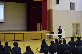生徒たちは、講師の方のお話しを真剣な表情で聞いていました。特に自分たちと近い年代の