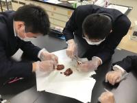 11月17日(木)6限目に、3年普通科理系と文系の生物合同授業で「心臓」の解剖観察を行いました。