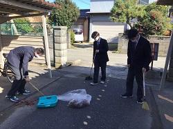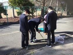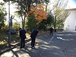 紅葉と共に、落ち葉が沢山でる季節になりました。校庭の樹から周辺の道路にも多く落ちるため、JRC部の生徒が、昼休みに道路や校地内を掃除してくれています。きれいにしてくれてありがとう。