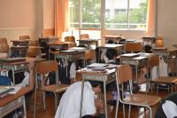 2学期中間考査最終日、3限目に地震と火災を想定した避難訓練を実施しました。地震発生後の一分間の安全行動の後、アナウンスと先生の指示に従って全校生徒・職員が避難しました。避難途中には、防火扉が閉まった箇所もありましたが、臨機応変に速やかな行動を取ることができていました。