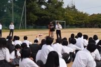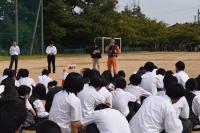 訓練後、消防署の方、校長先生からの講評をいただきました。生徒からは、「消防隊員の方が言っていた実際はパニックがついてくると言っていたのを聞いてもっと気を引き締めないといけないと思った。」(3年)や「校長先生の話で、普段から報告してから行動することができていないと有事のときに避難ができず戸惑ってしまうから習慣にしておくことが大事だとわかりました。」(2年)との感想がありました。