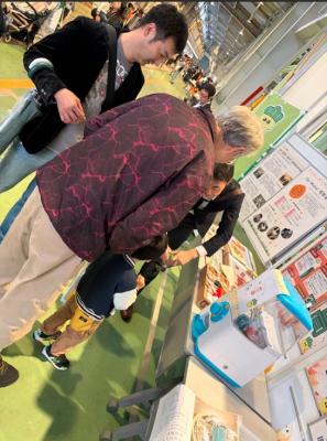 ブースを訪れ、遊んでくれました。本校生徒も子供たちと接し、ブースの運営を