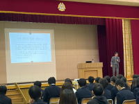 いしかわ教育ウィーク期間中の行事として、本日教育講演会が行われました。「地域とともに考える防災~東日本大震災の経験から~」と題し、金沢大学附属特別支援学校長の中澤宏一先生にご講演をいただきました。今回の講演会は、生徒・教職員だけではなく、保護者・地域のみなさまにも公開し、松任高校で一緒に防災・減災について考えてみたいと企画されたものです。中澤先生がご経験をもとにお話しされた大震災とその後の復興に取り組んだ高校生や教職員、地域の方のお話に、生徒も教職員も心を打たれ、会場一同、静かに聞き入った90分でした。講演後の生徒の感想からは、「中澤先生のお話を聞いて人の思いはどんなに小さくても伝染していくんだなと思いました。高校生が地域を励まして活気が戻っていったことを聞いて、高校生から身近な大人にそして地域に気持ちは通じることが分かりました。私たち松任高校生も中澤先生の体験からたくさんの思いをもらうことができて、本当に貴重な体験になりました。震災以外にもこのことは他人事ではなく自分事として活かしていきたい。」「高校生が周りを笑顔にしようという行動力や言動がとてもすごいなと思いました。震災を経験した後だからこそ、この(宮城県の高校生の)行動は本当に印象に残りました。わたしも見習いたいと思いました。」等の感想もあり、わたしたち一人一人が防災を自分事として考える貴重な機会となりました。