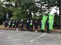 今日からの「あいさつ運動」には後期生徒会役員も初めての生徒会活動として参加しました。