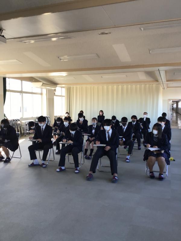 車いすフェンシング協会コーチで、本校の卒業生でもある山本迪也さんより「夢を持つことの大切さ」と題してご講演をいただきました。「夢を持つきっかけはちょっとした興味から生まれることがあるが、大切なことは興味を持って終わるのではなく、一歩前に踏み出してみることである。その一歩が人生を変える一歩になる。」と、ご自身の経験を踏まえて、生徒に伝えてくださいました。