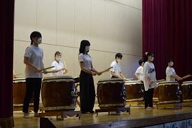 総合学科3年生の郷土芸能選択者による本校ではおなじみ浅野太鼓はなんと400年以上前から受け継がれる伝統があり、その迫力ある演奏で会場を盛り上げてくれました。