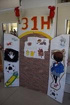 まずは3年生の模擬店でお昼を食べて、1・2年生が企画した宝さがしや腕相撲大会、的あてなどの模擬店で遊びました。
