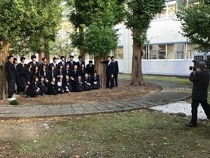 中庭で3年生のアルバム写真を撮っていました。直前まで鏡で身だしなみチェック。いい顔で写ったでしょうか。大人になってアルバムを開いたときに、楽しい思い出が沢山よみがえってくるといいですね。