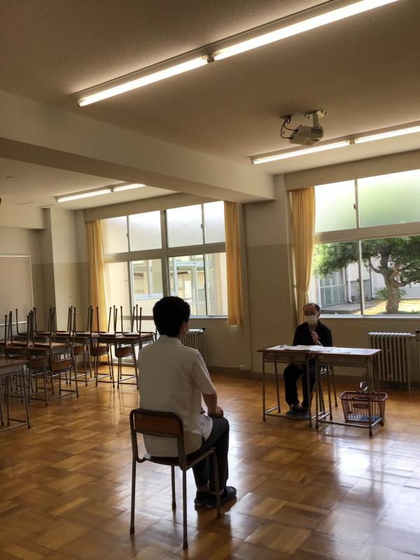前半、後半の計2回、初顔合わせのの面接官(本校教員)から面接指導を受けました。