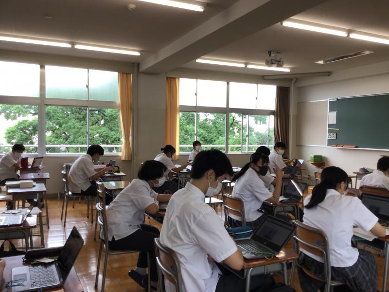 8月17日(水)は1・2年生の登校日です。清掃・LHのあと、9月10日(土)の基礎力診断テストに向けてClassiを使った事前学習を実施しました。生徒個々に合わせた学習動画を選択して取り組むもので、克服すべき分野に集中して取り組むことができるものです。生徒は動画を見ながら、確認問題に取り組んでいました。3年生の「就職教室」も継続して実施しています。面接の出来はまだまだですが、少しずつ志望理由が明確になってきたと思います。