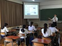 体験授業では、国語、社会、数学、理科、英語の講座を行い、高校の普段の授業を体験してもらいました。授業体験終了後、希望者には、部活動体験・見学を行いました。