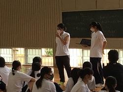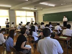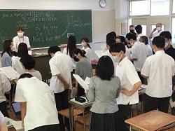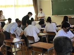 他校から20人ほどの英語の先生が参観に来校され、授業では、生徒とのペア活動の相手をしていただきました。