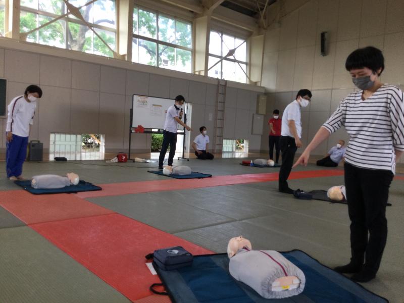 6月20日(月)に日赤の指導員を2名お招きし、教員対象に救急法講習会を