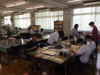 図書室をよりよい環境にするために、地道に、そして和気あいあいと作業が続きました。