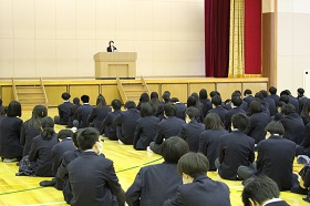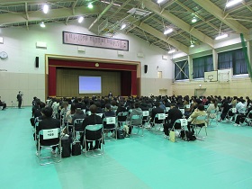 3/17(木)に希望者対象の説明会が行われ、集まった生徒達は真剣に聞いていました。