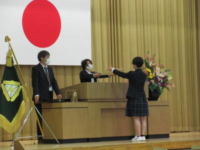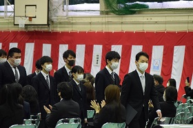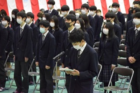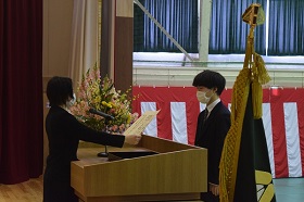 また答辞で、武部一輝くんが、「部活動や進路決定などで得た自信を持ち、卒業後も努力を続け、成長していきたい。」と、これからの決意を述べ、友人や家族、先生方への感謝の気持ちを綴り、結びとしました。
