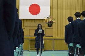 送辞で在校生代表の東みらいさんが、卒業生が大いに盛り上げてくれた文化祭の話をあげ、「先輩方の迫力あるパフォーマンスや新しい工夫にあふれたクラス企画などの文化祭での思い出は、私たちの青春の1ページを美しく彩っています。」と感謝の気持ちを述べました。