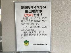 現在リサイクル用の制服の回収をしております。(クリーニングなしも可)